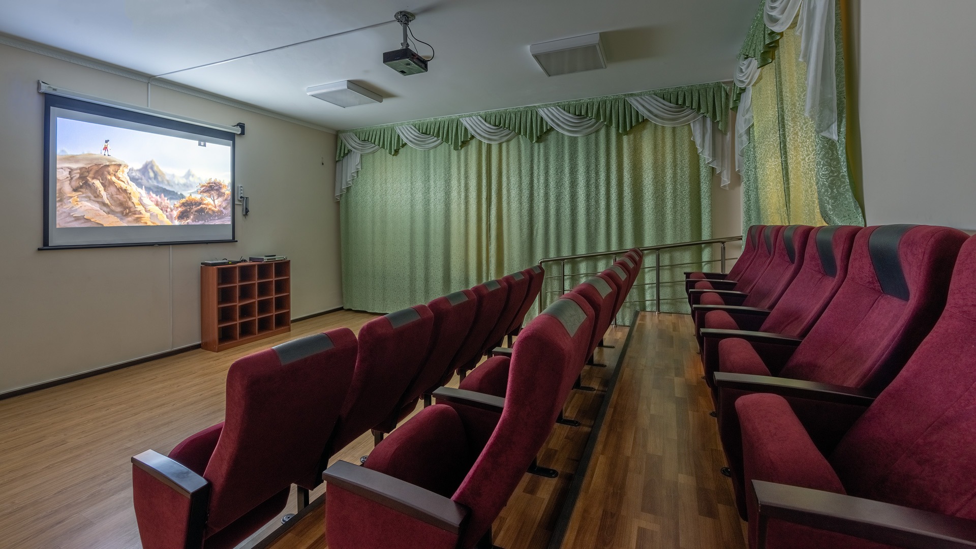 Для наших Гостей функционирует собственный кинозал на 18 мест, в котором можно провести вечер за просмотром любимых кинофильмов и мультфильмов.