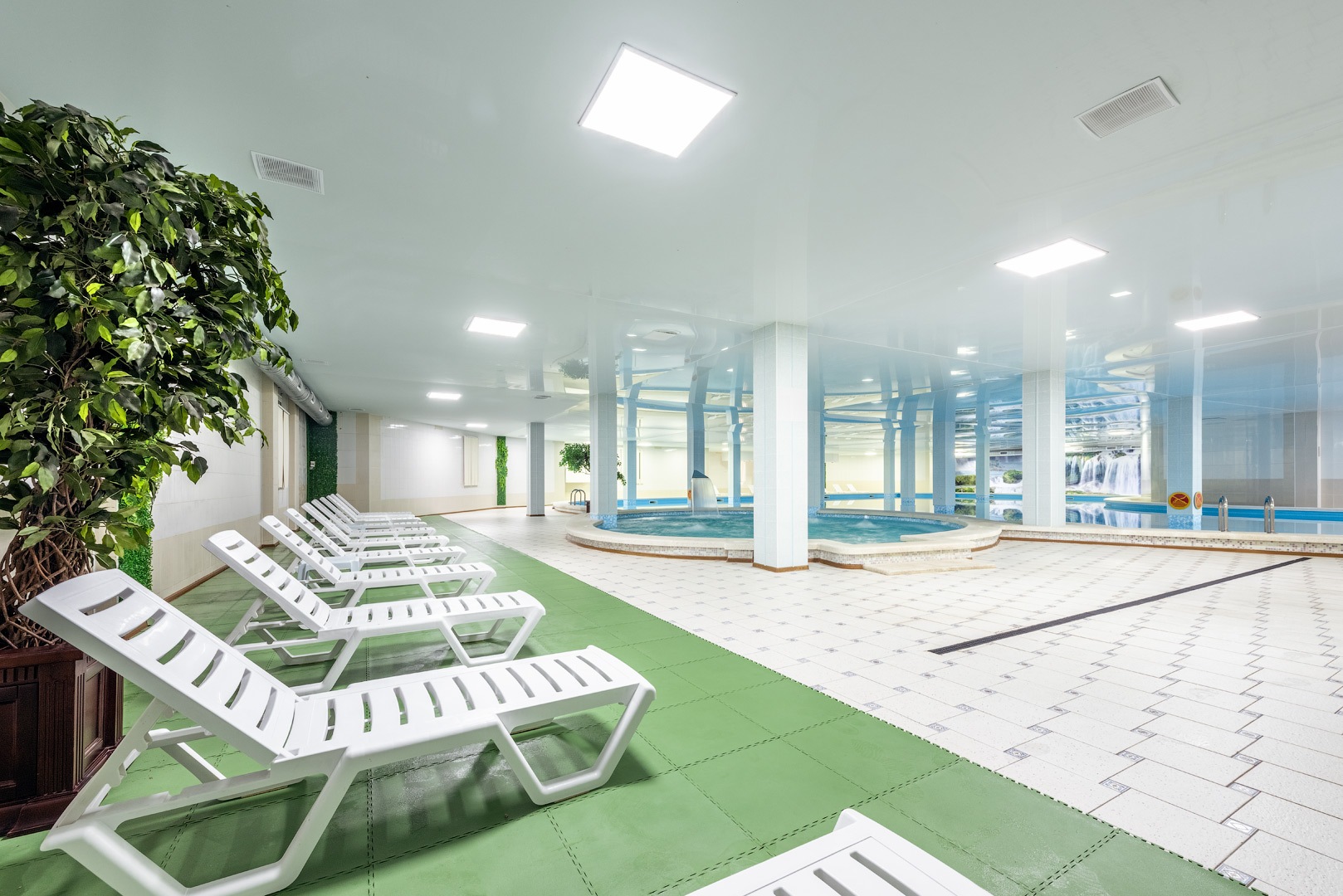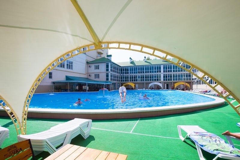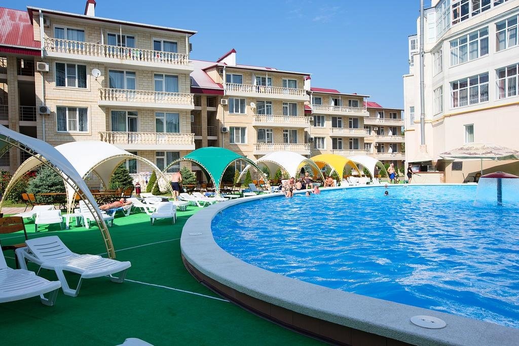 На территории санаторно-курортного комплекса расположен большой открытый бассейн (площадь зеркала свыше 600 кв. м.) имеющий собственный бар и гриль, с оборудованной шезлонгами, зонтами, столиками прилегающей территорией. Также большой закрытый бассейн, который функционирует с сентября(в случае понижения температуры воды моря и воздуха ниже 20 градусов в течении пяти дней подряд) по май.