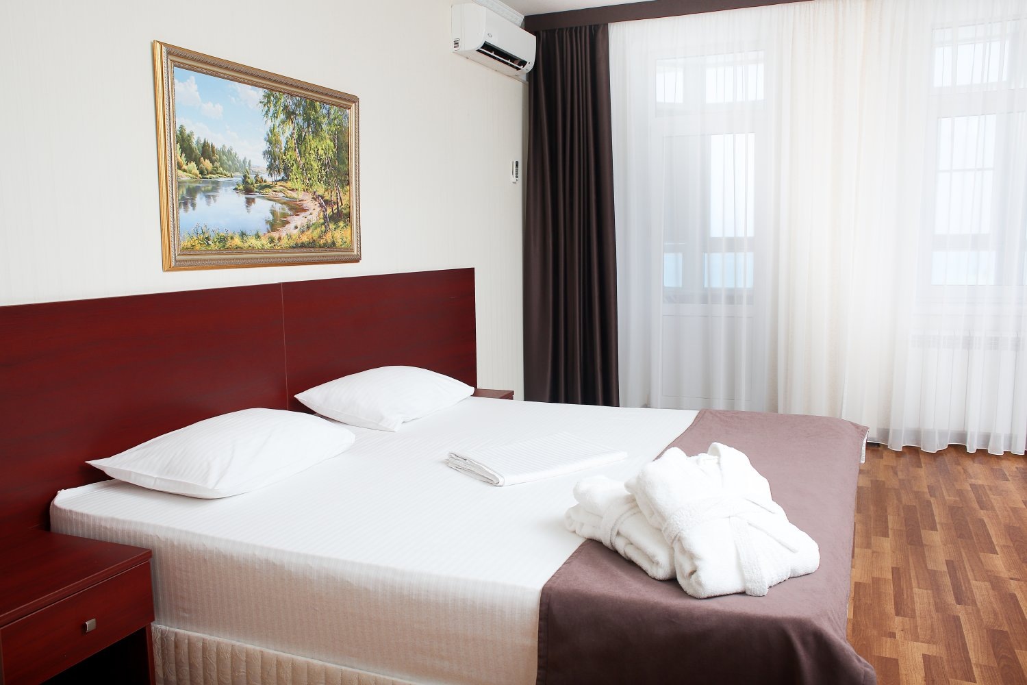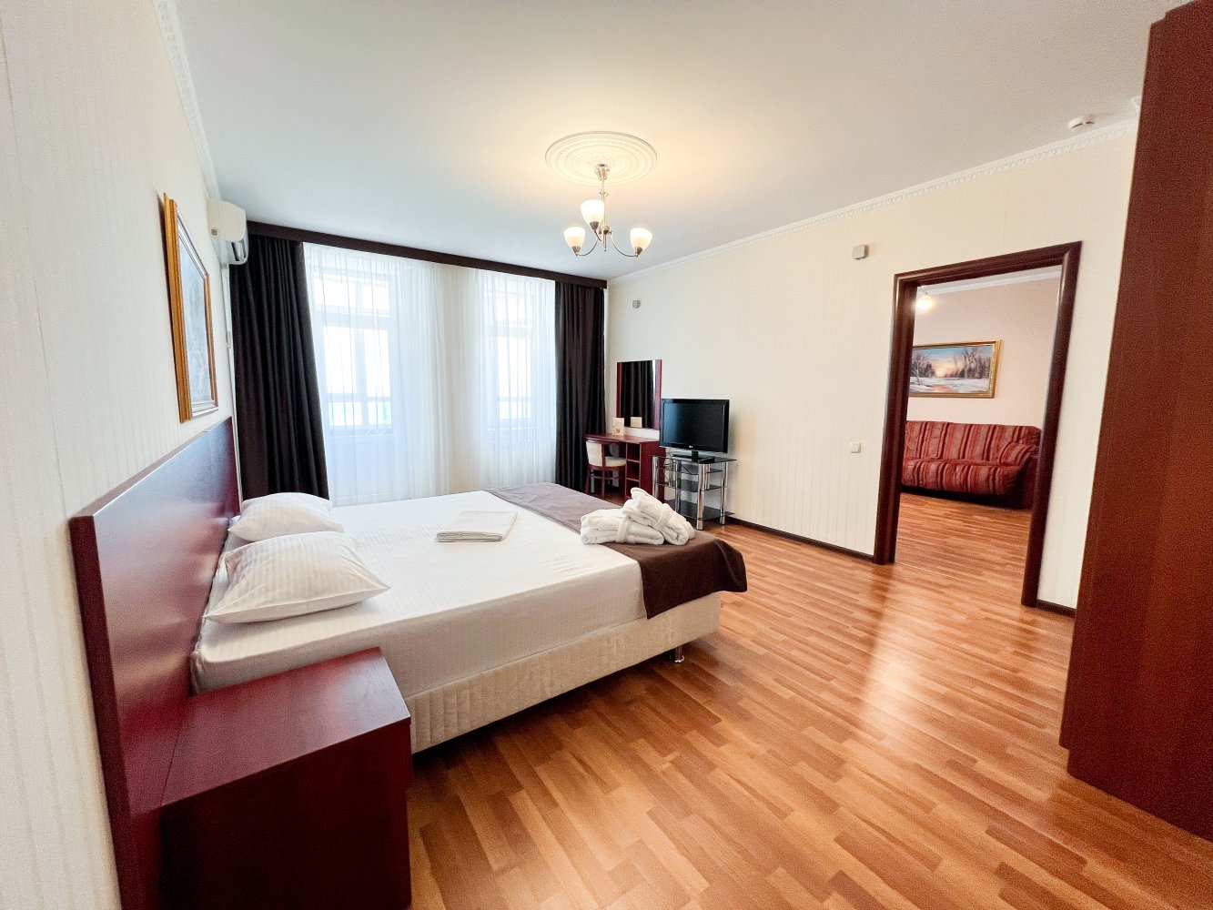 Просторный двухкомнатный номер с гостиной и спальней для комфортного отдыха семьи или компании. Максимальное размещение 2+2 чел.